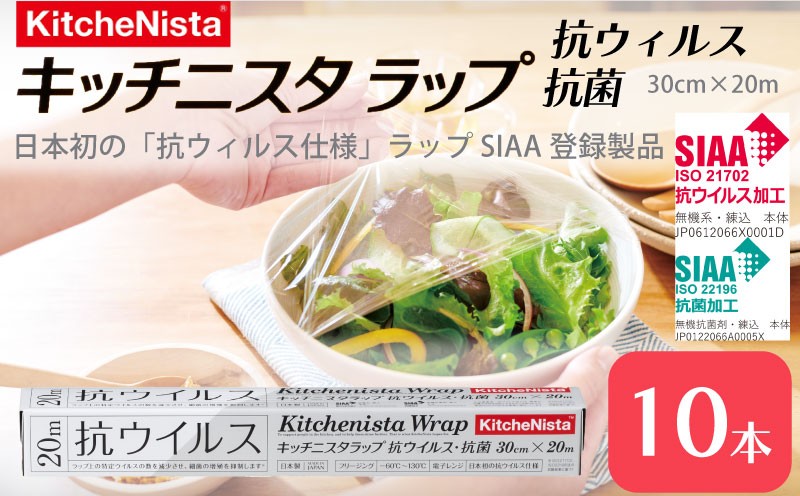 プロに選ばれるキッチニスタ!スッと切れて、よく伸びて、しっかり貼りつく。 日本初の「抗ウイルス仕様ラップ」 SIAA登録製品 キッチニスタラップ 抗ウイルス・抗菌 30cm×20m 10本 ラップ 食品ラップ キッチン 台所用品 日用品 抗ウイルス 抗菌 キッチニスタ 消耗品 キッチン用品