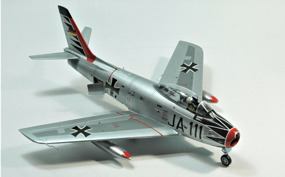 第二次大戦後の西ドイツ空軍において、空軍創設で活躍したのが第二次大戦中にNo.1エースのエーリッヒ・ハルトマンです。戦後の部隊創設時に登場した機体で機首の黒のチューリップを再現しました。