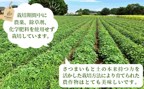 肥料・農薬に頼らずさつまいもと土の本来持つ力を活かした栽培方法により育てられた農作物はとても美味しいです。
