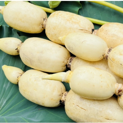 霞ヶ浦周辺一帯は、豊かな水と泥炭性の肥沃な土に恵まれ良質なれんこんが育ちます。食物繊維、健康に欠かせないビタミンCやビタミンB6が含まれています。