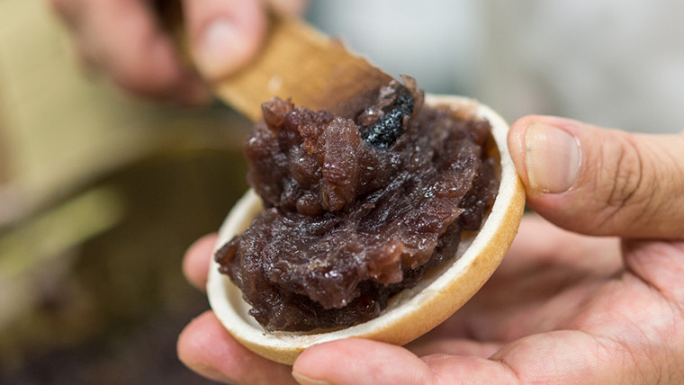 上質の小豆を土地の名水でもっちりと炊き上げ、上質の白ザラのみを使ってじっくりと丁寧に煉り上げています。