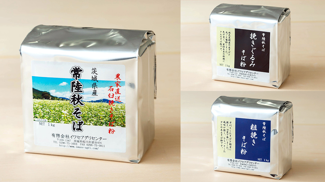 | 容量 | 石臼挽きそば粉 1kg×3種類、打ち粉 200g×3袋、つなぎ粉 400g×3袋 |