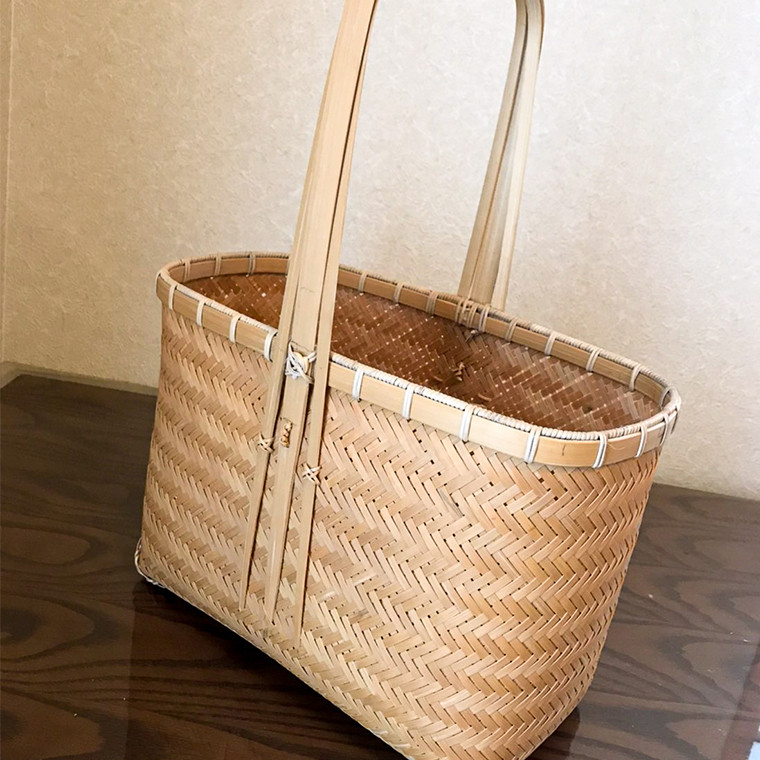 竹工芸品 網代編み手提げ 竹細工 バスケット かご 和風 手作り 工芸品 伝統工芸 [BF005sa]