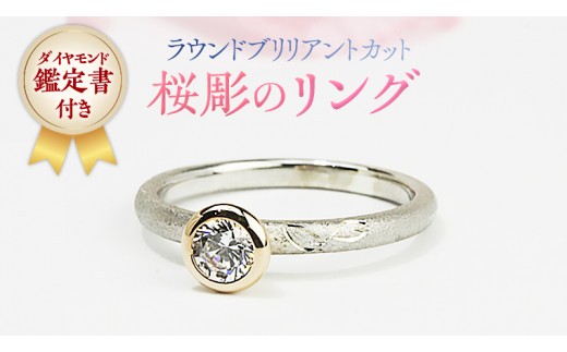 1.5mm幅の超細のダイヤモンドリングです。 ダイヤを留める枠がピンクゴールドで、さらにリングの腕に桜彫りがしてあります。シックで美しいリングです。サイズは合わせてお作りいたします。 本返礼品の主要な部分は、桜川市にて生産、製造または加工したものが占めております。 ※ラッピングしてお届けいたしますので、贈答用にもお勧めです。