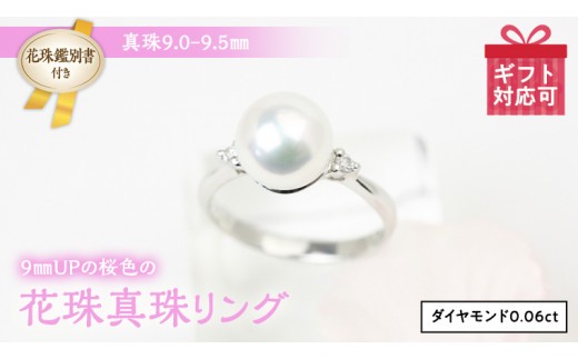 9mmUP の 桜色 の 花珠真珠 リング 真珠 ダイヤモンド 指輪 ア…
