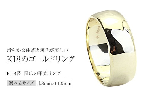 《 幅を選べる 》K18製 幅広の甲丸リング 8mm 10mm フォーマル …