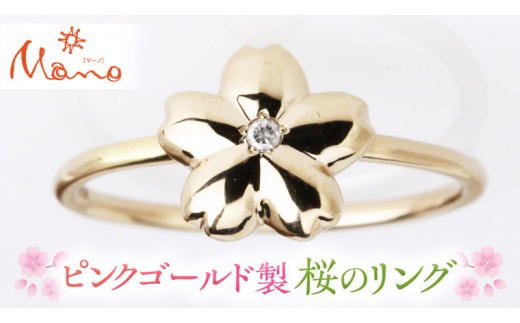 ピンクゴールド製の桜のリング K10 ダイヤモンド ダイヤ 指輪 …