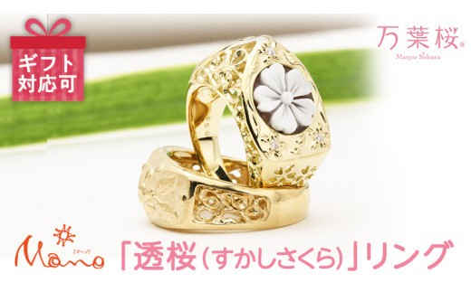 「万葉桜」は茨城県桜川市から生まれた記念の指輪です。様々な伝統工芸技法を使用して「桜川のサクラ」の世界観を表現しています。伝統工芸技術である「透かし彫」は通常は唐草模様や格子模様が多いですが、「万葉桜」では幅広のリングに桜の透かし彫、桜の浮かし彫、唐草の透かし彫を天地左右全面で表現しました。センターストンには10㎜サイズ桜のシェルカメオを留めました。商願2019-49313登録商品地金バージョンかカメオバージョンか選び下さい。お値段はどちらも一緒です。 ※ラッピングしてお届けいたしますので、贈答用にもお勧めです。指輪のサイズは地金バージョンは#16~28まで対応。カメオバージョンは#7~#16までサイズまで対応しています。サイズをご指定願います。 【注意事項】 指輪のサイズは地金バージョンは#16~28まで対応。カメオバージョンは#7~#16までサイズまで対応しています。サイズをご指定願います。 ご寄付後、サイズをお電話にて確認させて頂きます。 ※お受け取り後は、すぐに状態をご確認ください。※ 万全を期して返礼品をお届けしていますが、万が一、不備等があった場合は返礼品受け取り時に、写真(画像)を添付のうえ電子メールにてご連絡ください。 日数が経ったものに関しましては対応いたしかねますので、ご了承ください。 また、不備等があった返礼品は食べたり、飲んだり、捨てたりせず、対応が決まるまで保管をお願いします。保管されてない場合、代替品での対応等が難しい場合がございます。 ご連絡先:sakuragawa@furusato-g.com