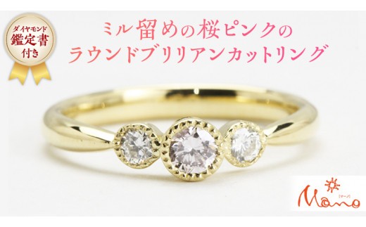ラウンドブリリアントカット桜彫のリング ダイヤモンド ピンク…