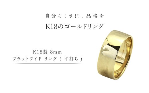 K18製 8mm フラットワイド リング ( 平打ち ) フォーマル 冠婚…