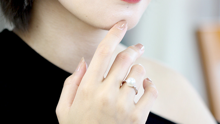 甘く繊細な輝きを纏って、指先を彩る花珠リング