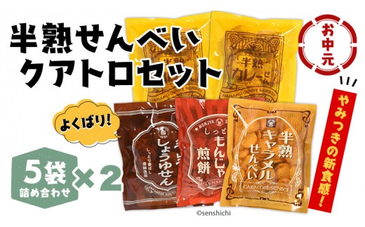 <お中元熨斗付き>半熟せんべい 5袋詰合せ×2箱(10袋) クアトロ…