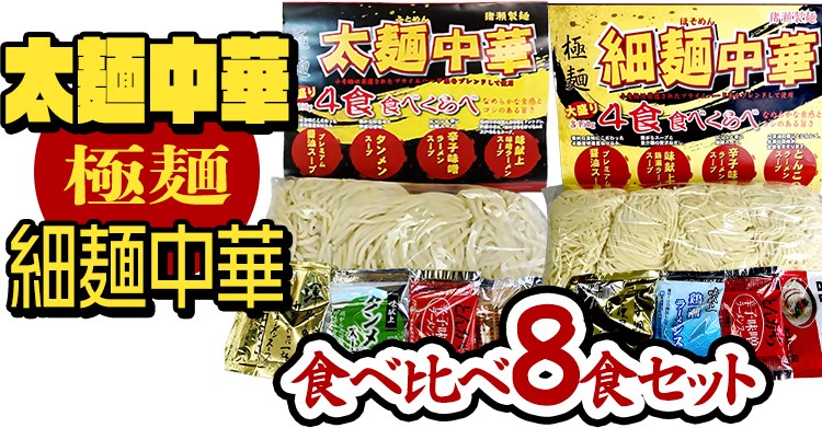 なめらかな食感とコシのある旨さ! 【極麺】 太麺 中華 ・ 細麺 中華 食べ比べセット (計 8食 ) ラーメン 1食150g 生麺 中華そば 人気 好評価 食べ比べ アソート 太めん 細めん スープ しょう油 味噌 タンメン 食べ比べ [CS001sa]