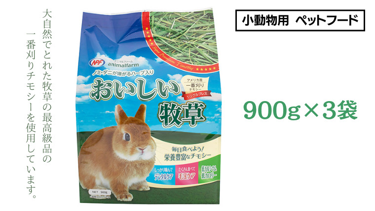 大自然でとれた牧草の最高級品の一番刈りチモシーを使用 アニマルファーム おいしい牧草 900g×3袋 チモシー 小動物用フード ペットフード 牧草 うさぎ チンチラ モルモット デグー [BU012sa]