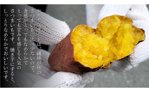 シルクスイートは、繊維が他のさつまいもに比べ少ないので、食感がとってもなめらかでとっても甘みを感じる人気のさつまいもです。