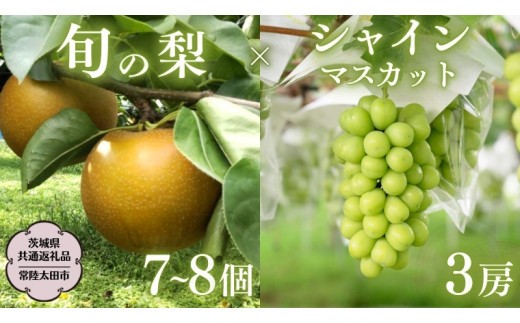 茨城県産 「 シャインマスカット 3房 」 と「旬の 梨 」 詰め…