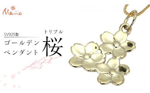 SV925製 ゴールデン トリプル桜 ペンダント ペンダント アクセ…