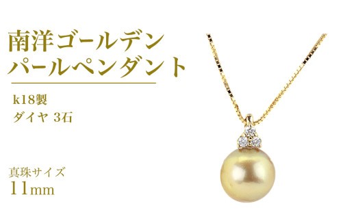 k18製 南洋ゴールデンパール 11mm ( 白蝶貝 南洋真珠 ) ダイヤ …