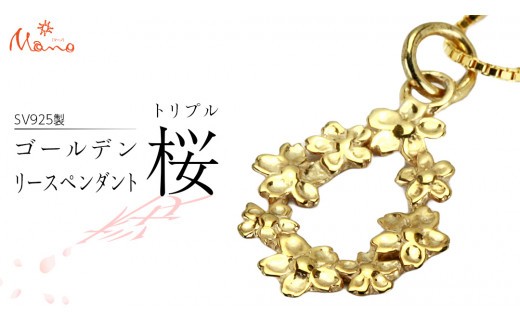SV925製 ゴールデン桜 の リースペンダント ペンダント アクセ…