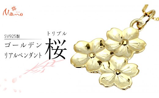SV925製 ゴールデントリプル桜 の リアルペンダント ペンダント…