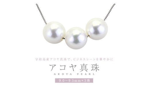 宇和島産 アコヤ真珠 (大粒9mm×3珠 美しいピンク系) スルーペン…