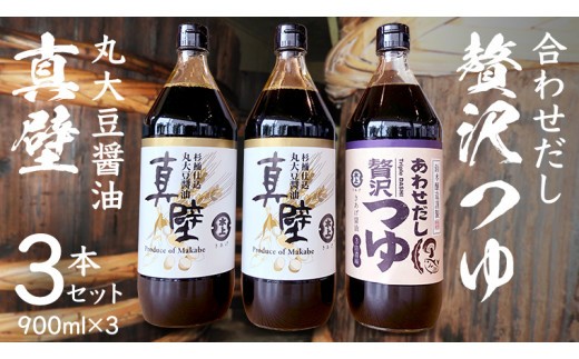 丸大豆醤油 ・真壁 ( 900ml × 1本 ) と 贅沢つゆ ( 900ml × …