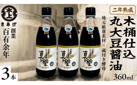 100年木桶仕込~風土が育む 唯一無二の味~ 丸大豆醤油・真壁 3本セット 900ml×3本 きあげ醤油 鈴木醸造 木桶仕込み しょうゆ しょう油 調味料 老舗 桜川市 [EP001sa]