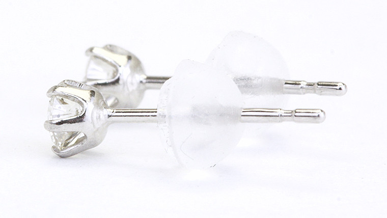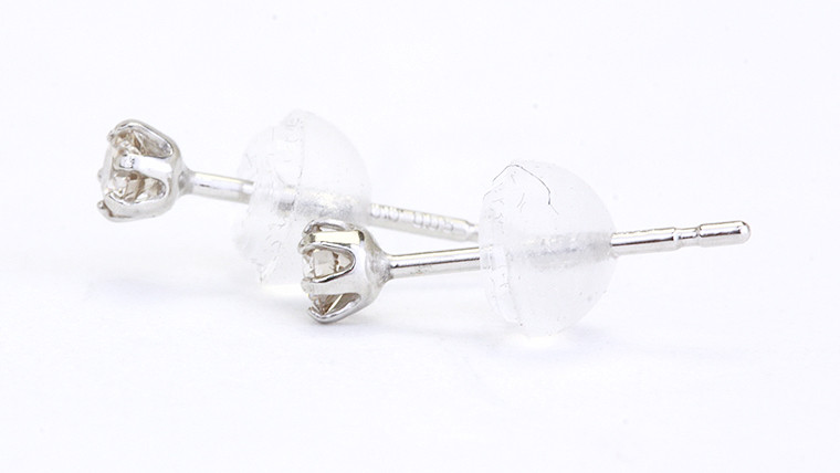 ベーシックな6本爪のデザインの一粒ダイヤモンドスタッドピアスで、キャッチは外れにくいシリコンタイプです。