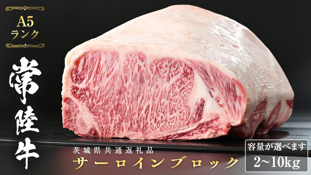 | 容量 | 常陸牛A5等級 サーロインブロック 2kgから10kgまで、1kg単位でお好きな重量をお選びください。 |