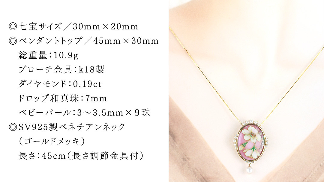 有線七宝作家の「森千鶴子氏」と「ジュエリーマーノ」の共作です 「 桜川 七宝 」 初見櫻 ペンダント & ブローチ (45mm×30mm) / 母の日 プレゼント ジュエリー 作家 伝統工芸 森千鶴子 記念 ギフト 贈り物 贈答 [AH130sa]