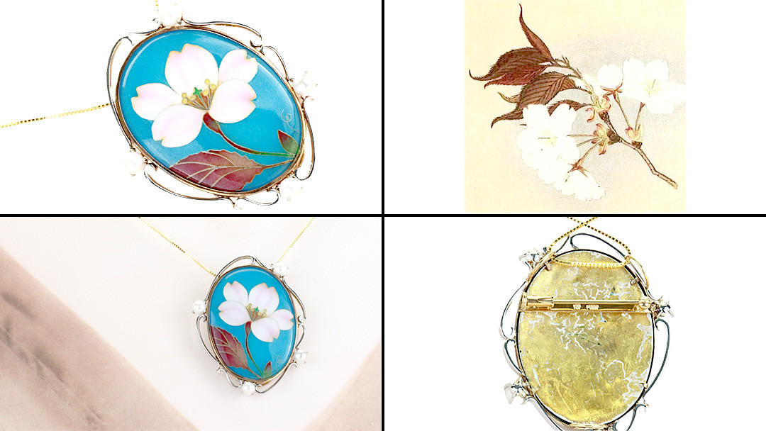 有線七宝作家の「森千鶴子氏」と「ジュエリーマーノ」の共作です 「 桜川 七宝 」 源氏櫻 ペンダント & ブローチ (48mm×38mm) / 母の日 プレゼント ジュエリー 作家 伝統工芸 森千鶴子 記念 ギフト 贈り物 贈答 [AH132sa]