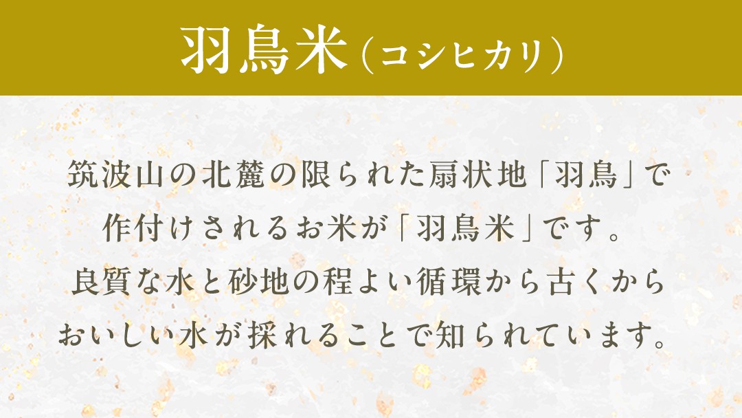 筑波山の北麓でおいしい米の穫れる桜川市真壁町。 その真壁町の中でも古くからおいしいとされる産地、羽鳥地区で取れた米が「羽鳥米」です。 限られた土地で作られ、そのおいしさからほとんどが地元で消費されてしまう幻の米で、山からの清流と砂目の土地の恩恵を受けた極上のコシヒカリです。 【注意事項】 直射日光・高温多湿を避けて比較的涼しい場所(10~15℃)で保存してください。なお、開封後は賞味期限にかかわらずお早めにお召し上がりください。 ※配送できない地域がございます※ ・北海道、沖縄県 ・伊豆諸島:青ヶ島村(青ヶ島)・利島村(利島)・御蔵島村(御蔵島)・式根島 ・小笠原諸島:小笠原村(父島・母島・硫黄島・南鳥島など) ※お受け取り後は、すぐに状態をご確認ください。※ 万全を期して返礼品をお届けしていますが、万が一、不備等があった場合は返礼品受け取り時に、写真(画像)を添付のうえ電子メールにてご連絡ください。 日数が経ったものに関しましては対応いたしかねますので、ご了承ください。 また、不備等があった返礼品は食べたり、飲んだり、捨てたりせず、対応が決まるまで保管をお願いします。保管されてない場合、代替品での対応等が難しい場合がございます。 ご連絡先:sakuragawa@furusato-g.com