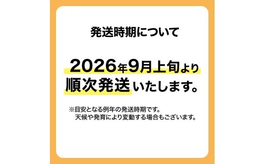 入金確認後、2026年9月上旬より順次発送 ※目安となる例年の発送時期です。天候や発育により変動する場合もございます。 |