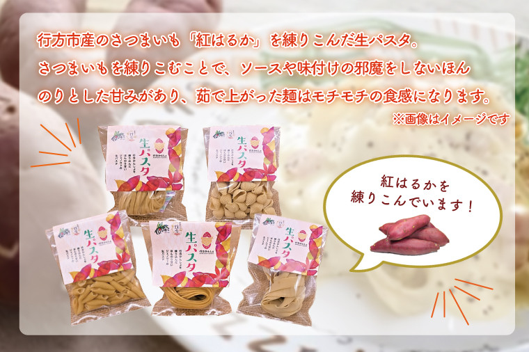 行方市産のさつまいも「紅はるか」を練りこんだ生パスタ。