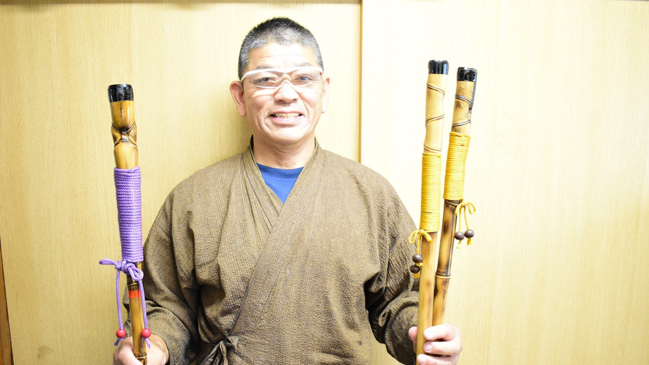 剣道指導者段位を持つ、生産者の粟野さんは、剣道の練習に人や障害物のない場所で、このステッキで素振りをしています。