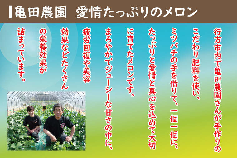亀田さん夫婦がミツバチの手を借り、まごころ込めて作ったジューシーなメロンをお届けします。
