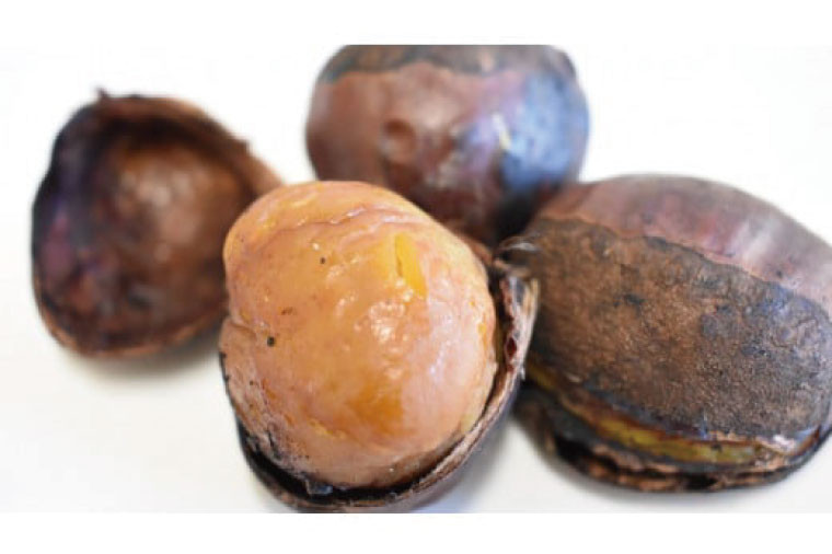 ・熟成が進み糖度が上がると栗の中心部が紫色に変色する場合がありますが、品質に問題はありません。