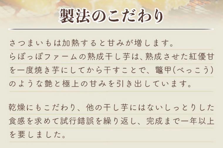 素材の甘みが楽しめる、焼き芋の蜜をそのまま閉じ込めたような濃蜜干し芋。 CQ-43 らぽっぽ 熟成蔵 熟成干し芋スライス(1袋 80g) 4袋 干しいも ほし芋 ほしいも ギフト さつまいもスイーツ ご褒美スイーツ 芋スイーツ おいもスイーツ お菓子 さつまいも 健康 おやつ