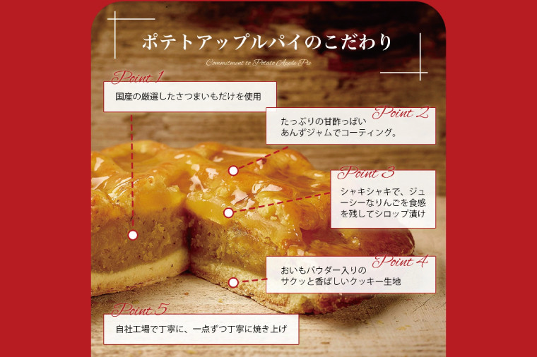 さつまいもの本来の甘みを生かし、丁寧に焼き上げました。しっとりさつまいもとジューシーりんごは相性抜群となっております。