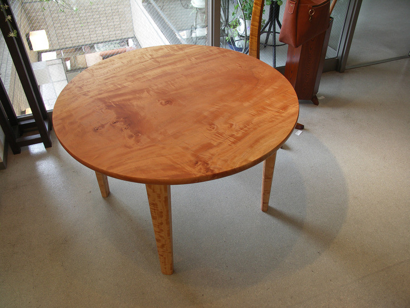 鉾田市在住、木工作家の堀場清氏による栃材を使用した丸テーブル。