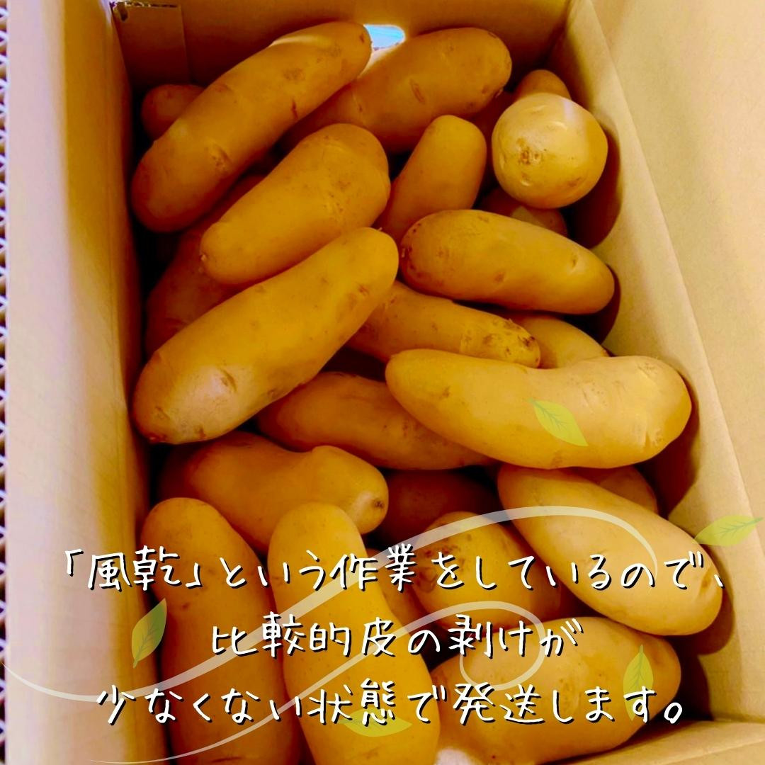 畑から堀あげてから冷蔵庫で一時保管し、冷やしてからブラッシングする、「風乾」という作業をしているので、比較的皮の剥けが少なくない状態で発送が出来ます。