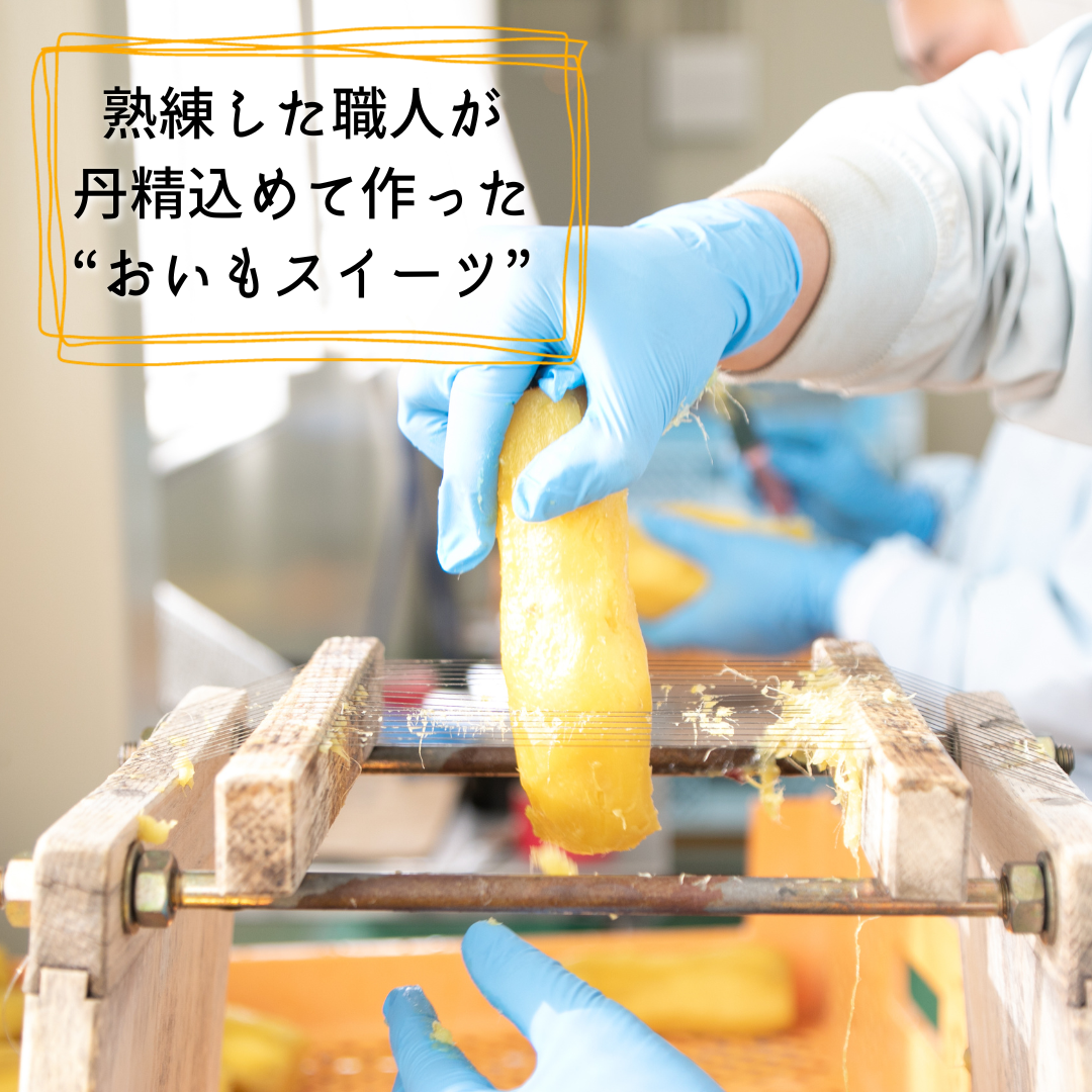 熟練した職人が丹精込めて作った“おいもスイーツ”。美味しいだけではなく、安心してお召し上がりいただける商品をご提供することが私たちの使命と考えております。私たちは、「安全・安心な農産物・加工物」にこだわり、皆様に心から美味しいと思っていただける商品をご提供すべく、日々努力してまいります。ことさらお客様からの「美味しかった」のメッセージはありがたいと職人一同感謝し、やりがいに繋がっております。
