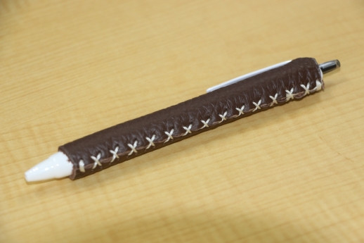 皮のボールペンカバーを使用することで、グリップ感が向上。