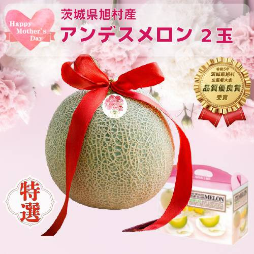 さっぱりとしながら甘い 愛されるメロン「アンデス」をお届けします! 【母の日用ラッピング付】【特秀】アンデスメロン 2玉(2.5kg)茨城旭エメラルド