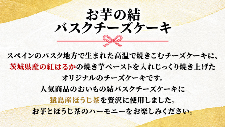 人気商品のおいもの結バスクチーズケーキに猿島産ほうじ茶を贅沢に使用しました。