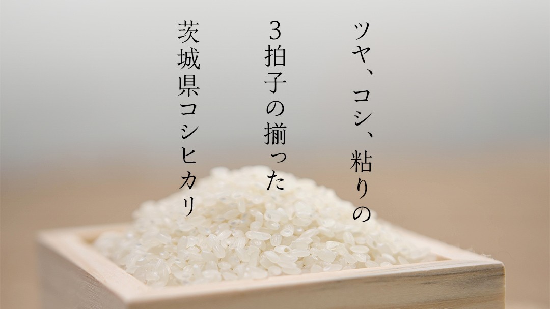 ツヤ、コシ、粘りの3拍子の揃った茨城県内で一番の収穫量を誇る『こしひかり』です。