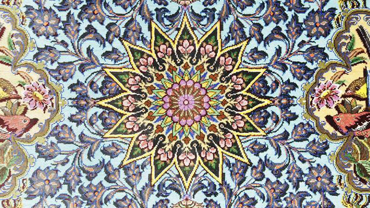 驚くような細かな織り目とビロードのような生地、肌に吸い付くようなシルクの艶やかな光沢感が豪華絢爛。まさに、「The ペルシャ絨毯」と言うべき最高峰のペルシャ絨毯は、もはや工芸品ではなく美術品としての価値となります。シルクの絨毯は毛足の光沢が見る向きによってまったく趣の異なる色合いになりますので、敷く際は向きを調整していただくとよいです。