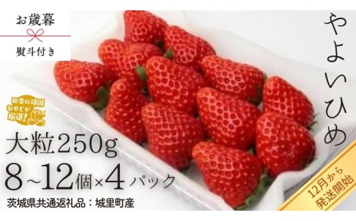 チョイスPayポイントと交換できる品 【 お歳暮 熨斗付 】やよいひめ〈いちご〉大粒 250g(8~12粒)×4パック【2025年12月から発送開始】(茨城県共通返礼品 [いちご]:城里町産)いちご 苺 イチゴ やよいひめ