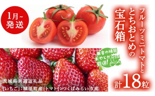 チョイスPayポイントと交換できる品 とちおとめ と フルーツミニトマトの宝石箱 18粒【1月から発送開始】(茨城県共通返礼品 [いちご]:城里町産 [トマト]:つくばみらい市産) 詰め合わせ 果物 フルーツ 茨城県産