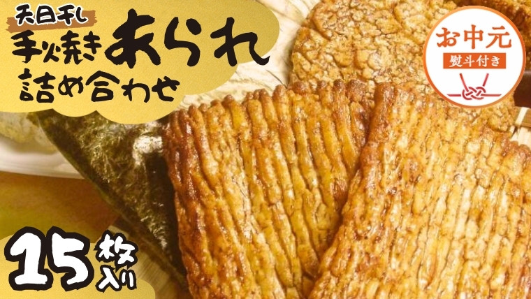 【 お中元 熨斗付 】 手焼きあられ 詰合せ 15枚入り おいしい おやつ 引っ越し 御礼 お取り寄せ 慶事 弔事 長期保存 退職 あられ 煎餅 せんべい